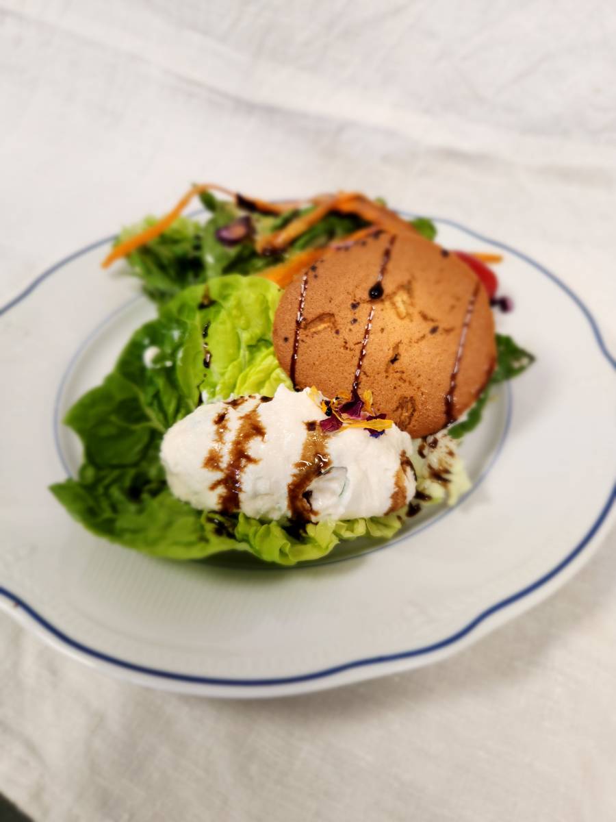 Au cœur de cette entrée, retrouvez la finesse du fromage de chèvre, sélectionné avec soin pour sa qualité et sa texture crémeuse. Associé à une touche de miel artisanal, il dévoile des notes sucrées qui se marient à merveille avec la fraîcheur des crudités.